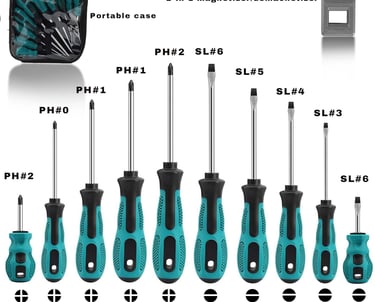 10pcs Screwdriver Set,Heavy Duty Chrome Vanadium Steel Made,Magnetic Screwdriver with 5 Cross& 5 Flat Head,Durable Hand Tools in Carry Bag