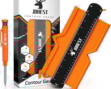 JOREST Contour Gauge 10 Inch + Carpenter Pencil, Profile Template Tool for Laminate Flooring, Tile Laying, Woodworking, Measuring Shape Outline, Unique...