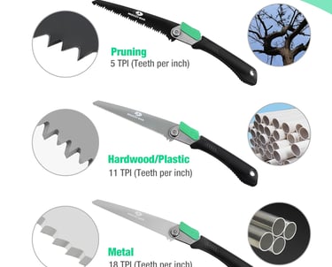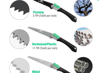 Mossy Oak Pruning Saw, Folding Hand Saw with Secure Lock, 3 Blades Made of Cr-V and 65Mn, for Wood, Bone, PVC, Tree Pruning, Camping, Hunting, Non-Ferrous...